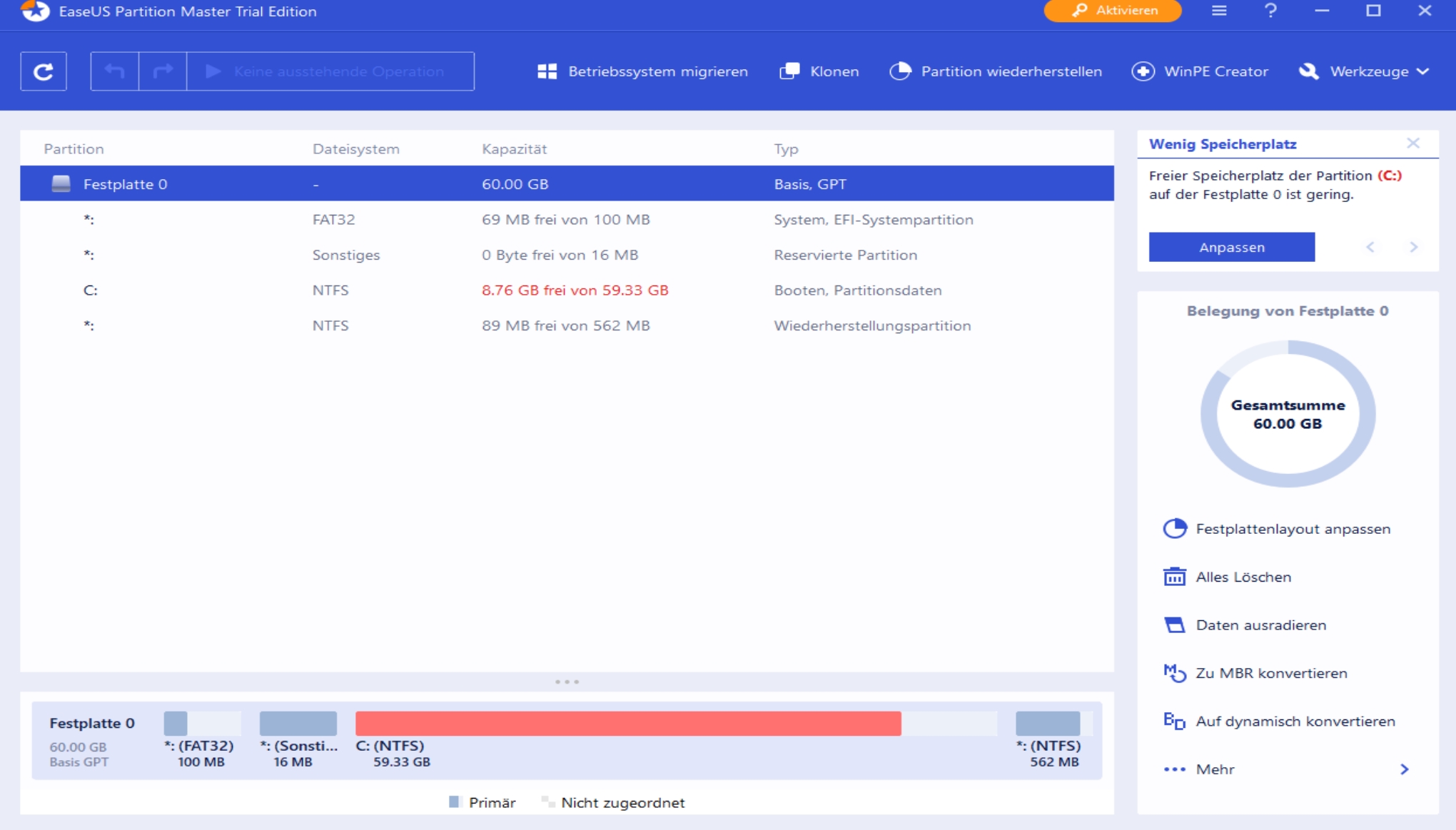 EaseUS Partition Master Pro – komfortable Kontrolle über Ihren Speicher